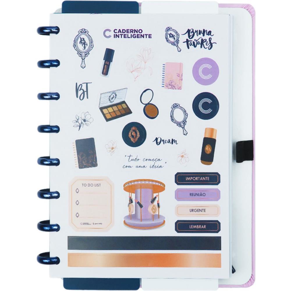 A uniao do universo do Lifestyle da maquiagem com a praticidade da papelaria se concretiza no Caderno DREAM. Ideal para suas anotacoes, uso escolar ou universitario, este caderno e perfeito para transformar seus sonhos em realidade.Por ser O CADERNO INTELIGENTE original, voce pode adicionar e remover folhas sempre que desejar, proporcionando uma experiencia versatil e personalizada.O Caderno Inteligente® BT vem acompanhado por uma cartela de adesivos inspirados na jornada Bruna Tavares e um face chart EXCLUSIVO para documentar o passo a passo da sua maquiagem. A vantagem de reposicionar a folha permite que voce a guarde onde preferir.
