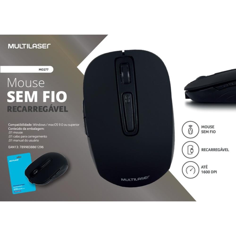 Compatibilidade: Windows XPVista7 e SuperiorMACConexao Wireless 2.4g via dongle USB 2.0Nao acompanha pilhas 1AAResolucao de 1600 DPIBotao Scroll para rolagem de telaDesempenho preciso atraves do sensor opticoDistancia de funcionamento: 10m3 Botoes1 ano de garantia